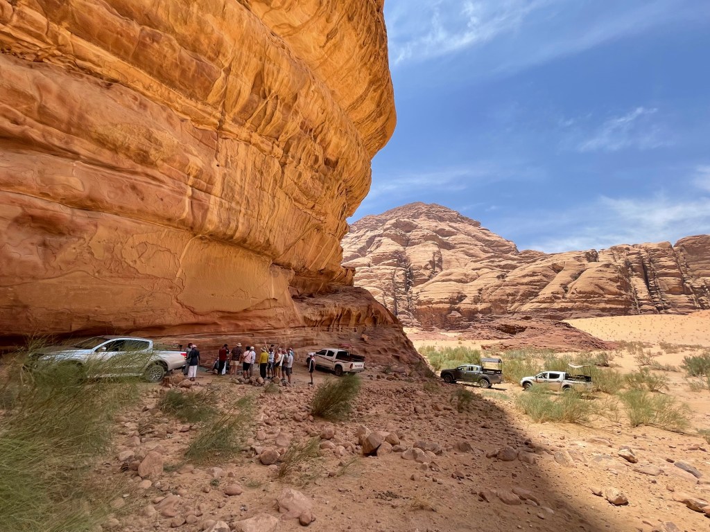 We lumbered along, taking it all in, came over a gentle slope and then stopped…to see 2,000 yr old carvings in the hillside rock. They told of a caravan…traders and their camels. Did they signal a trading route? One of safe passage? Or was it simply ancient graffiti left by those who stopped here for the night? It remains a mystery…one of many secrets this land holds close.