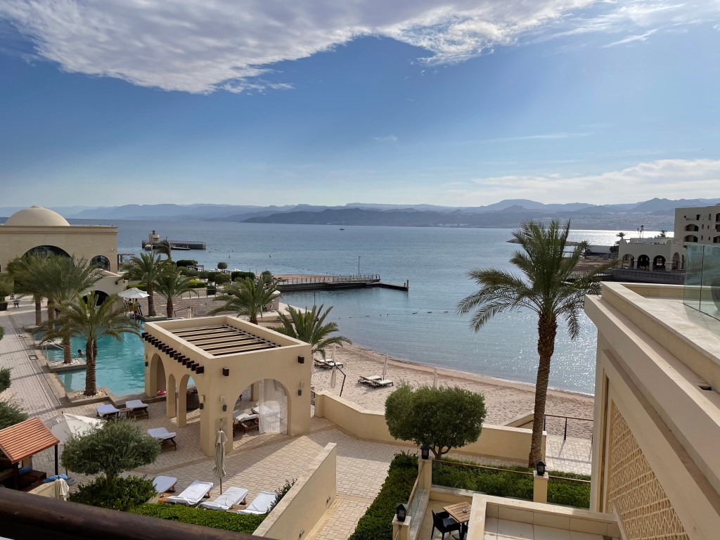 After our incredible adventure exploring the sands and sights of Wadi Rum, we spilled out of the pickups and back into the motor coach…from dirt roads to high rises, you might say…bound for Aqaba, Jordan and a luxury hotel perched at the tip of the Red Sea. Nothing planned for tonight, and nothing on the agenda for tomorrow. A welcome respite to relax and recharge after days filled with activities (especially as we think about Tel Aviv Pride coming up!).
