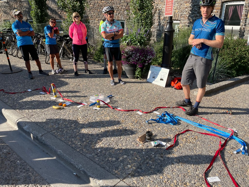All journeys begin with the first step (forgive the cliché), and this one is bike fitting. Getting your own pedals installed begins the process (for you non-cyclists, pedals/cleats/clips are not universal, and the cleats themselves are individually fit to your shoes/feet, so you want your own), then comes seat and handlebar adjustments. This was all done after a tasty lunch with the Backroads team and the other 19 guests. Lots of folks from CA…other parts of the US…two from Brazil. I was pleasantly surprised at how diverse the group was. Brief intros, a lengthy “rules of the road” discussion, a wildlife safety talk (bears are dangerous – don’t be stupid), and we were off! A short day (~20 miles) was intentional so we could get used to the bikes they provide.