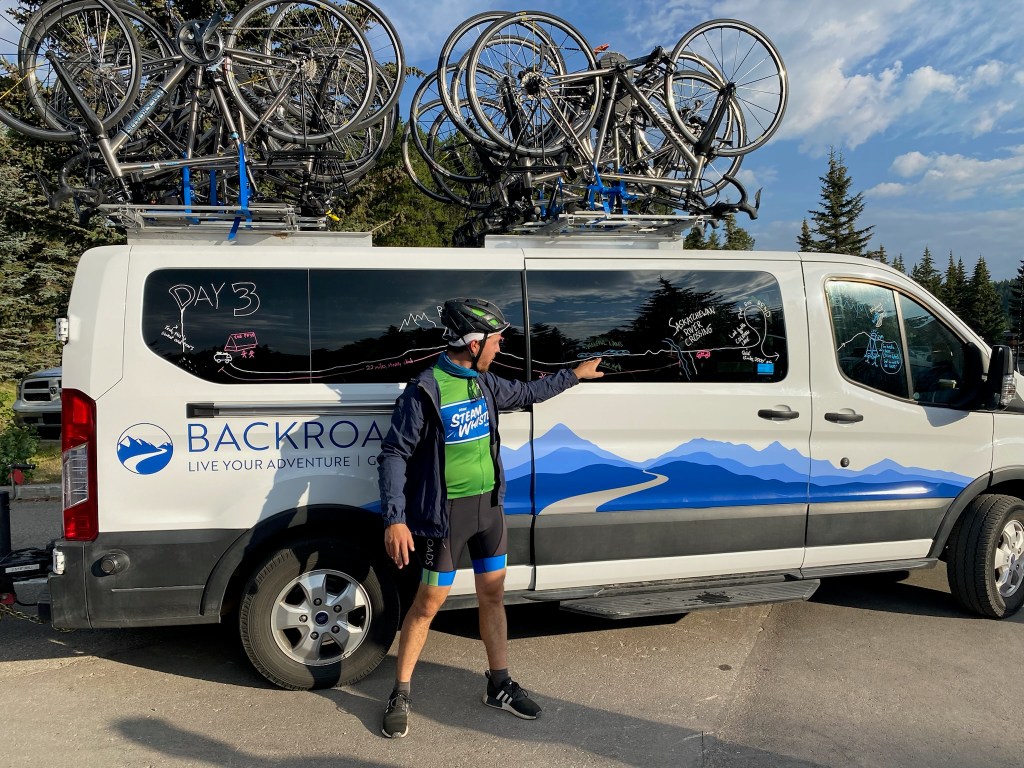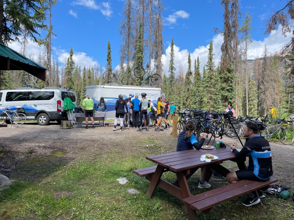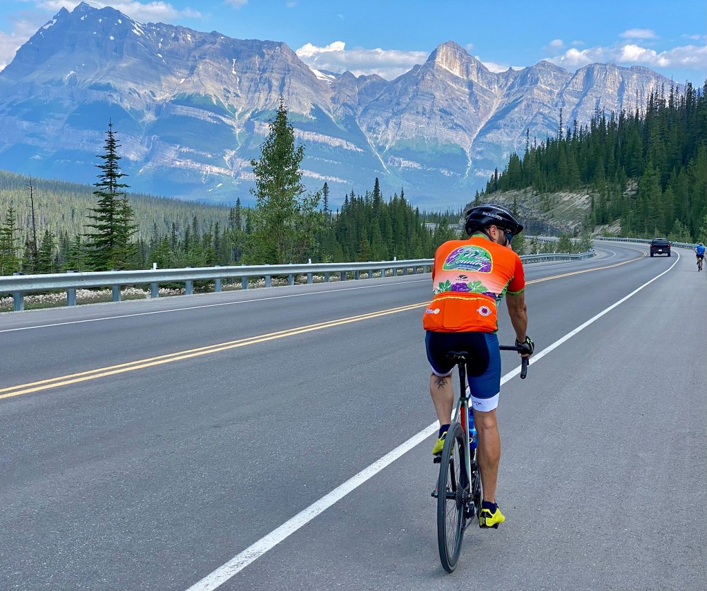 Having been briefed, we clipped in and started another glorious day as we made our way to the Columbia Icefields and the Glacier View Lodge. We would end up at 6800’, and the lungs were feeling it by the time we got there.