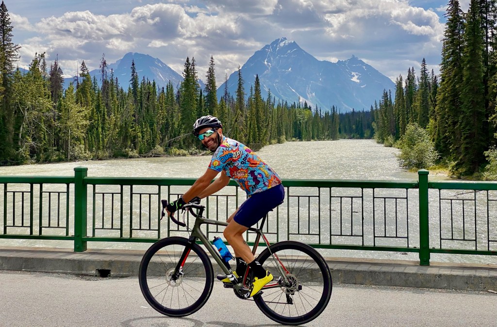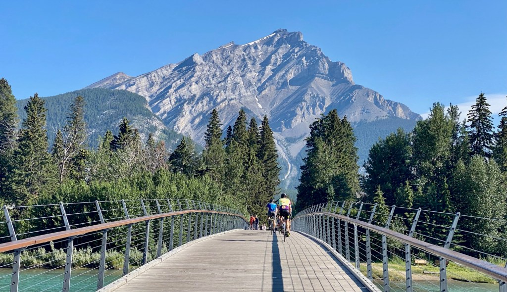 As we leave the quaint town of Banff, bustling with summertime crowds shopping, eating, perusing the galleries and waiting in line for the only ice cream in town, the majesty of the Canadian Rockies begins to unfold before us. Our legs and lungs warm up as we cycle out of town, awestruck by the never-ending magnificence around us. We’re riding through the Bow Valley, the bright sun and blue sky shining above energizing our body and spirit.