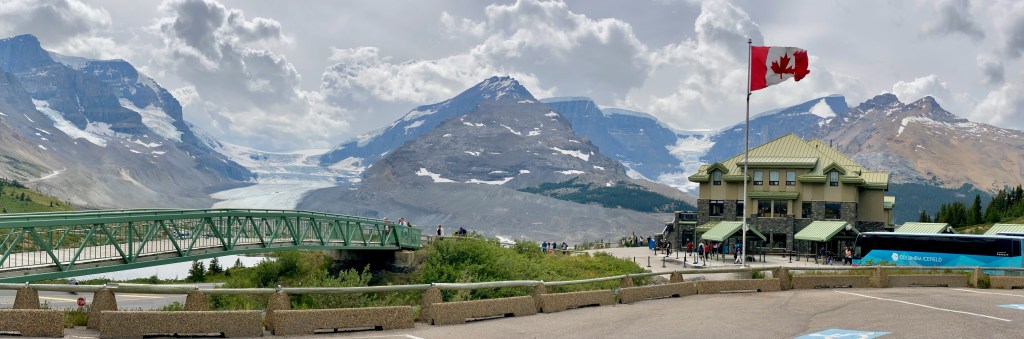 The traffic calmed a bit, fortunately, and we continued our adventure through the chilly but thankfully dry mountain roads. For those of us not wanting to do the massive final climb, we would get picked up at the Saskatchewan River Crossing and shuttled to the Glacier View Lodge (the one place to stay at the Columbia Icefields). As the van pulled into the parking lot, we were awestruck by where we were. How far we’d come, it seemed, from the warm sunny flats of Banff to nearly 7,000 feet and cold snowy glaciers – but also in awe of what we were seeing. A glacier thousands of years old right across the road, our rooms peering out from the warmth behind triple-paned glass, watching over it day and night.