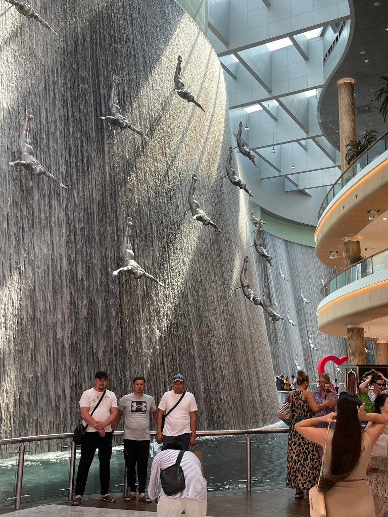 We were absolutely done with malls, but intrigued by signage pointing to “the waterfall.” We made our way there and were pleasantly surprised by three beautiful walls of divers plunging to pools of water that gathered at the bottom of water streaming down from three stories above. It’s wonderful to see that in the midst of all this hyper-consumerism, there is time for art.