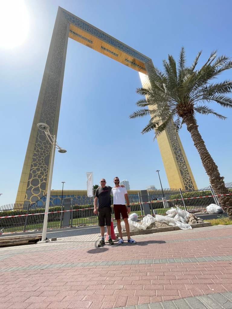 After battling the first night of brutal jet lag (11 time zones crossed to get here), the sun pushed its way through the horizon made hazy by the humidity, and we got going. We booked a ½-day tour around Dubai for our first day, and were picked up that morning by Major, a kind and low-key guide who was perfect for a city orientation. While there was an occasional language barrier (Hindi being his first language), he shared many tidbits about the city. He advised about bargaining, and was always there to snap a pic like the one at the Dubai Frame. The Frame is a soaring artistic symbol of progress, truly framing “new Dubai” when looked through from the vantage point of old Dubai.