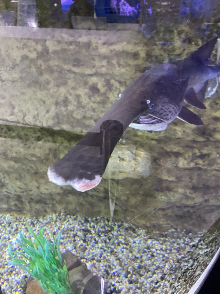 Our last day in Dubai was intentionally one of leisure. The Dubai Aquarium (which is at the Dubai Mall – are you sensing a theme here?) was our first stop. Some cool and unusual fish, a really old enormous alligator, and a creatures-of-the-night section (not aquatic for some reason) lined a meandering path through the place. The whole thing was capped by a glass-bottom boat tour that was super hokey as it made a small trip around the top of the shark and ray tank. For five minutes, if that. Did I mention the Aquarium gift shop that dumps you right back into the mall? 😄