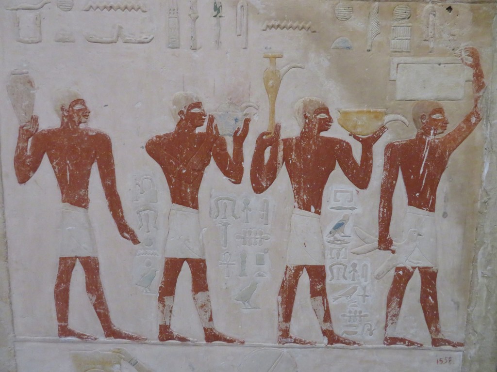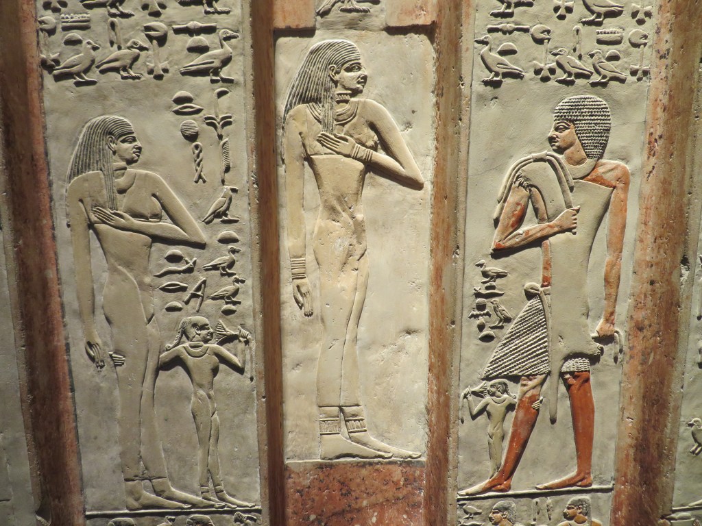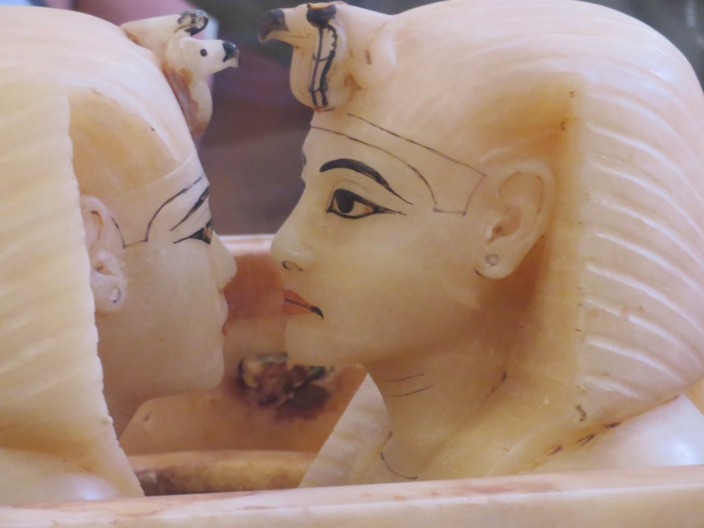 Once inside the existing museum…poorly lit, randomly organized, small crowded rooms too hot for the masses (there’s no a/c)…we are thankful for our guide Ahmed who knows where the highlights are. And there are many! The task of a new museum to replace this one is understandably daunting: the collection has some 180,000 pieces. Ahmed takes us through the galleries telling complicated stories of of royal families and depictions of gods and what the hieroglyphics mean. It’s all such a fascinating window into an ancient world (described in way too much detail by Ahmed, who enthusiastically goes deep) – the social structures, cultural practices, standards of beauty, the privilege of power and birthright. And it’s so inconconceivably…old. That seems the wrong word, though! Is the depiction of a king (who will also become a god in death) from 2500 BC really “old” or so beyond our ability to imagine the timeframe in which it originally existed that it’s worthy of a different idea?