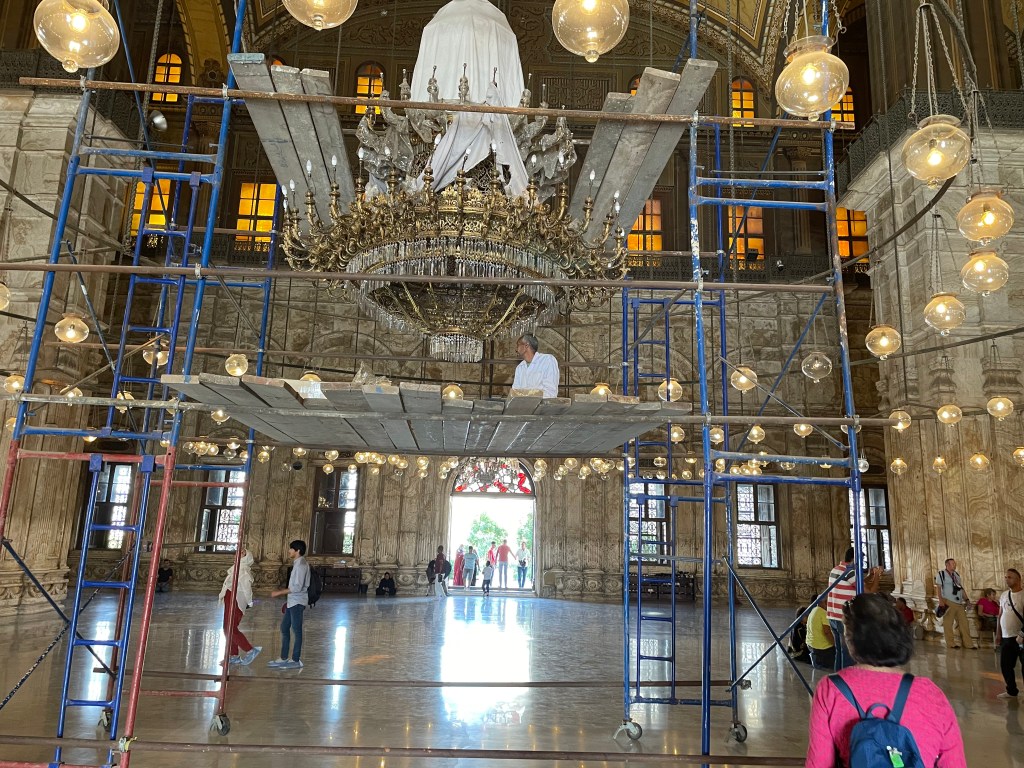The interior of the mosque is beautiful and in one corner is the tomb of Mohamed Ali. Restorations are under way, and it’s oddly intriguing to watch the craftsman work on the chandelier. As we gather in front of the tomb, Ahmed takes the opportunity to passionately talk – at length – about how religion is about love, and we all sort of wonder if this is sincere or coached pro-muslim messaging intended for Americans. After all, tourism is big business in Egypt.