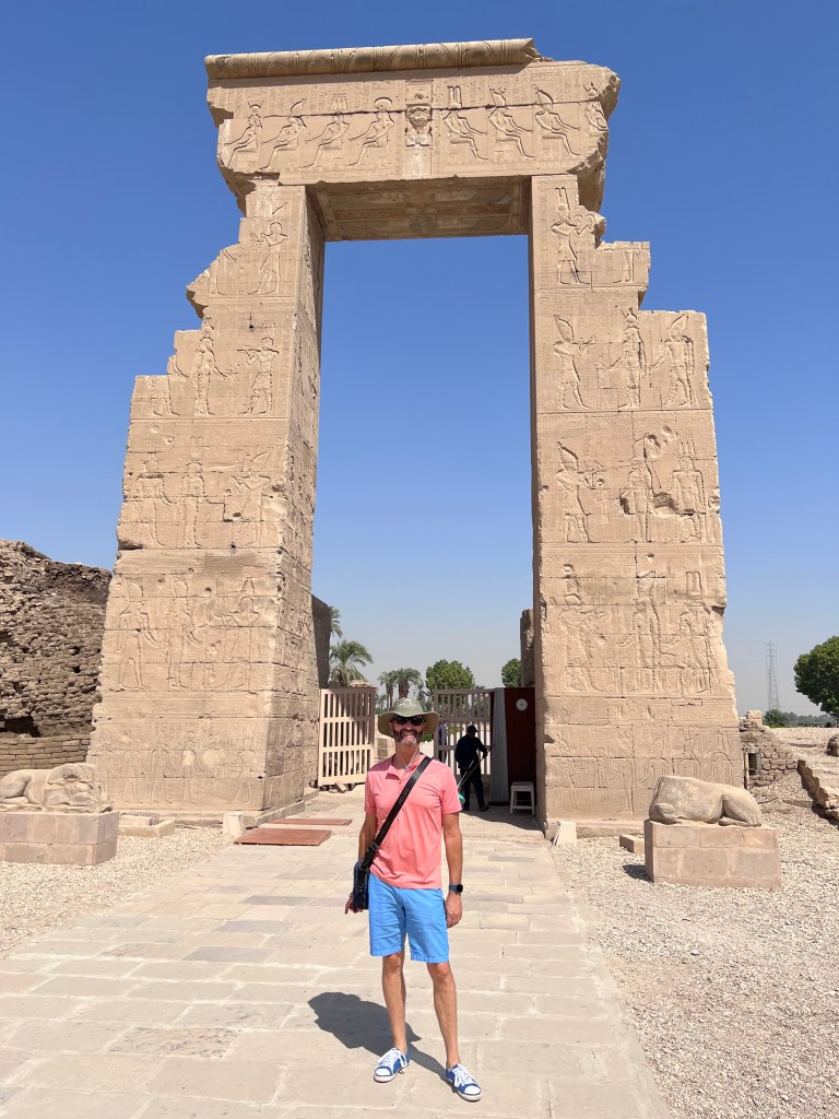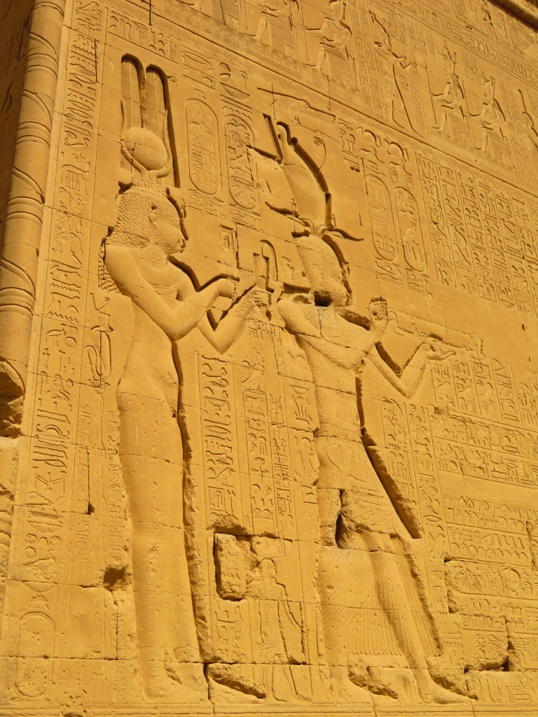 While Cleopatra closes out the many chapters of Ancient Egypt over a rather short period of time, she’s certainly not forgotten – she’s here! Ahmed leads us to the rear of the structure and there’s Cleopatra on the back wall. Note the very small figure that comes up to her knee. That is her son Caesarion who succeeded her as the Egyptian sovereign. He reigned for just 18 days.