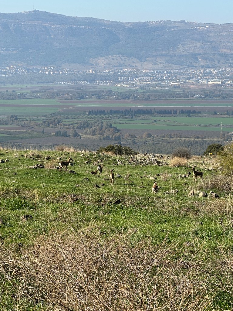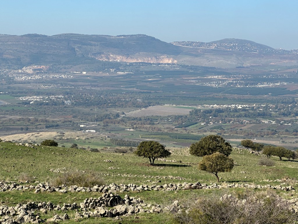 The day’s journey continues to The Bental Volcano (long inactive), a crest of the Golan Heights where you can see into Syria – if you look across the DMZ between the Israeli occupied portion and Syria (reference the map above). We’re high enough up here to do so, which is a bit unsettling even amidst the calm and quiet. Turning around, the Hula Valley stretches out below the us, cradled beneath the hills that rise above it to the west.