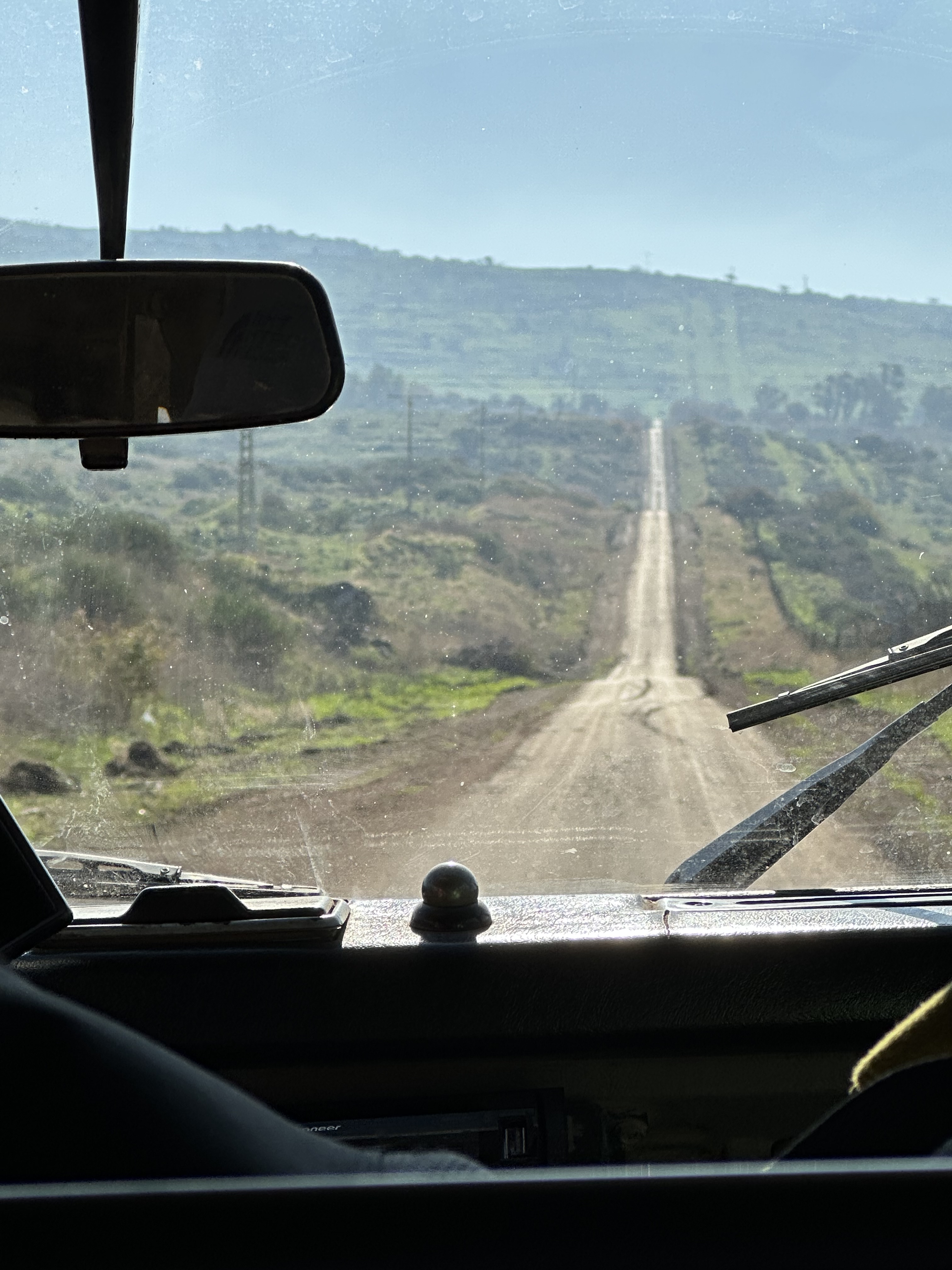 We need a different vehicle for this next chapter, so Hilik hands us off to Royi, and we pile into his open jeep, driving a paved road for a bit before we cross over to a dirt road. A smooth road quickly transitions to a rutted and precarious up and down through the cattle fields that gazelle also call home. Eventually we have ascended up to an amazing view of the Hula Valley.