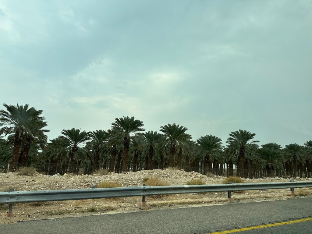 Aside: we pass a sign for Wad Mujib, which is right across the Dead Sea in Jordan. That’s where we went canyoning in June 2022. It was incredible! The Dirt Roads & High Rises post about that adventure is here: Canyoning In Wadi Mujib.