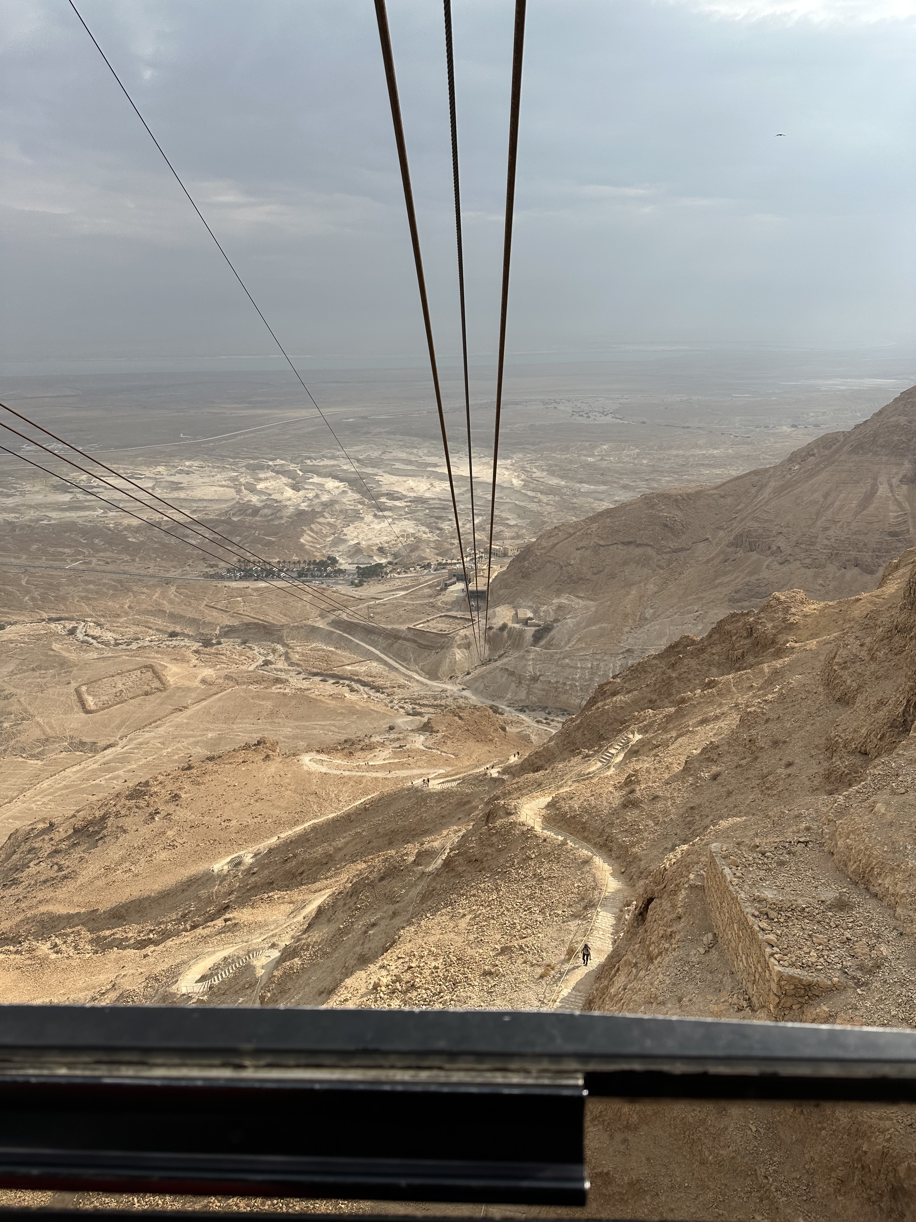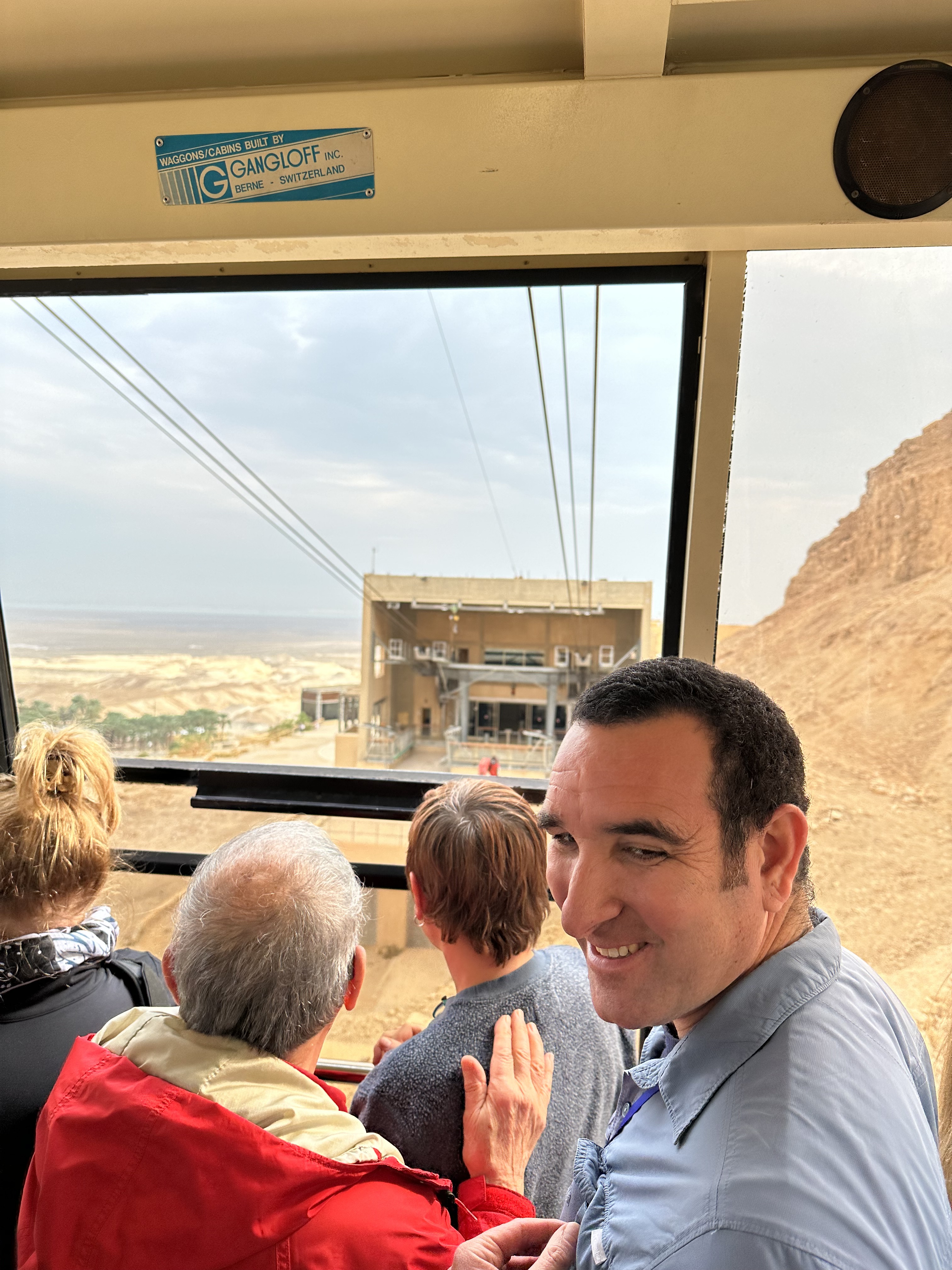 The adventure begins with a low-budget but entertaining movie about Masada’s history, the room only partially filled with tourists. The lack of crowds is great as we board the gondola quickly. Some of us remark that walking up would be very cool to do (arduous, yes), as would visiting at sunrise. Another time…