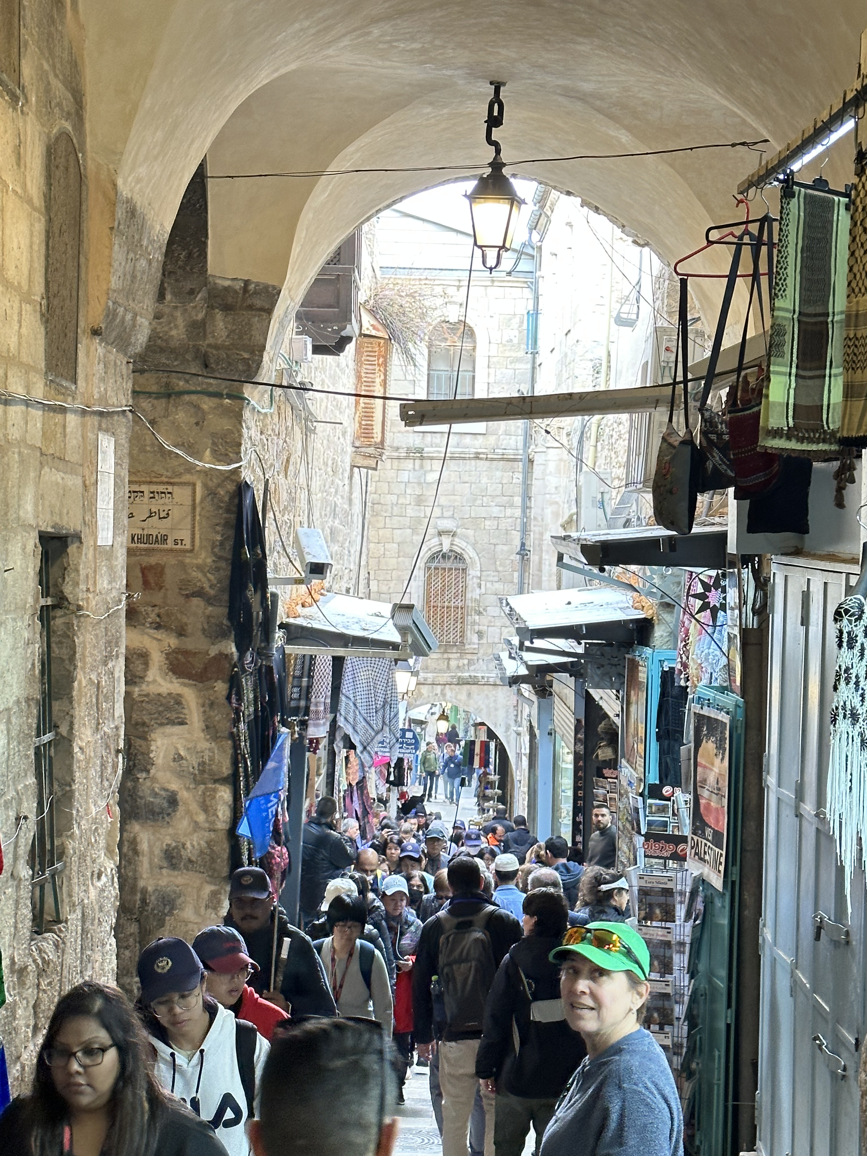 A Star of David on a building provides a clue that we are entering the Jewish Quarter, confirmed by the security check required to pass through a few steps later. The Western Wall is here, so the security makes some sense. Bags are scanned (but is anyone really watching?), and we are asked where we are from…then quickly waved along.