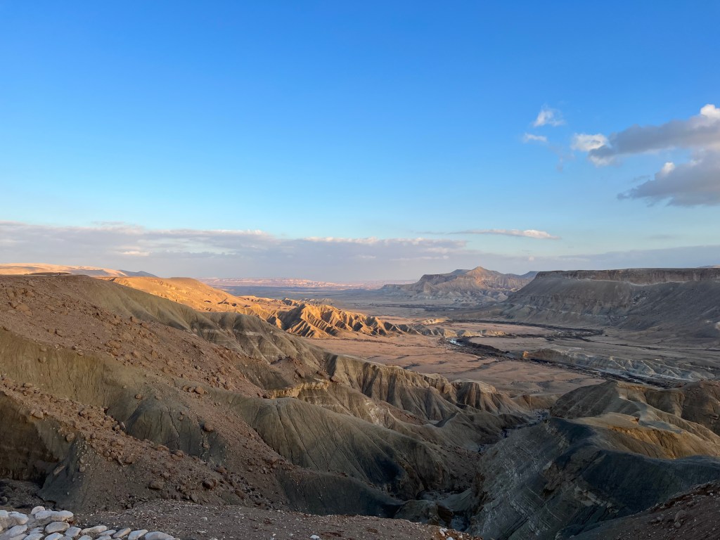 Traversing time from ancient history to modern, we then venture to Sde Boker, a kibbutz in the Negev Desert that was the retirement home of David Ben-Gurion and where a memorial to him sits on the edge of the Makhtesh Ramon (more on that in the next post). It’s a beautiful spot – perfect to spend eternity – with sweeping vistas and herds of ibex to keep you company.