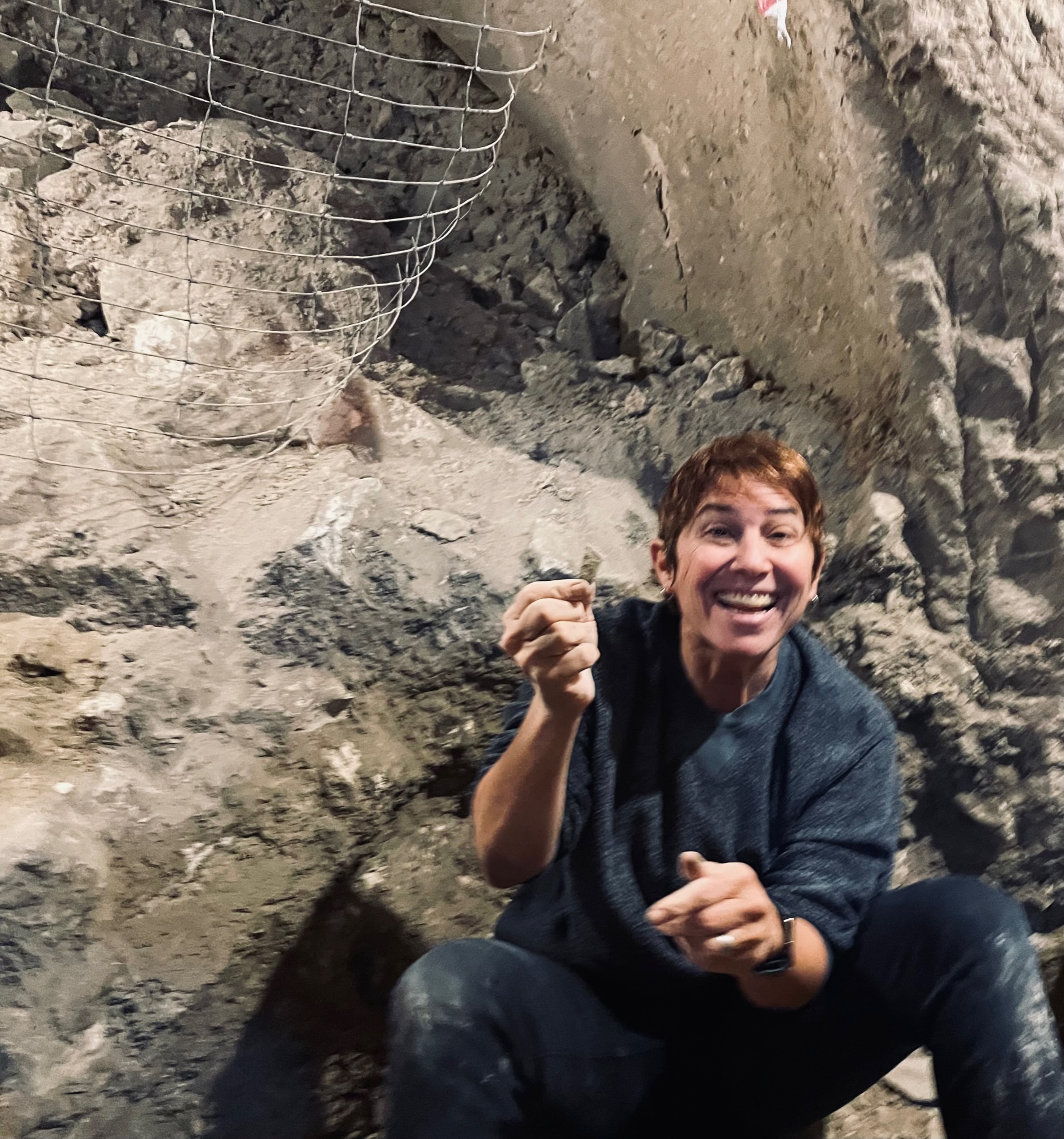 We spend about an hour digging and then head back to the surface for the next step – sifting through the buckets of dirt we just gathered. The light in the cave is not great, so inevitably you miss things, we’re told. We were surprised at how much more we find as the dirt is shaken through a metal screen stretched across a wooden frame.