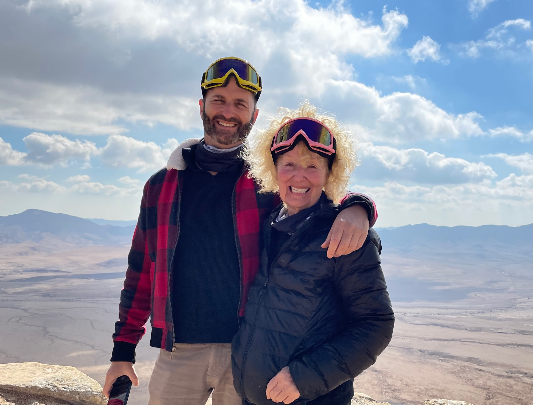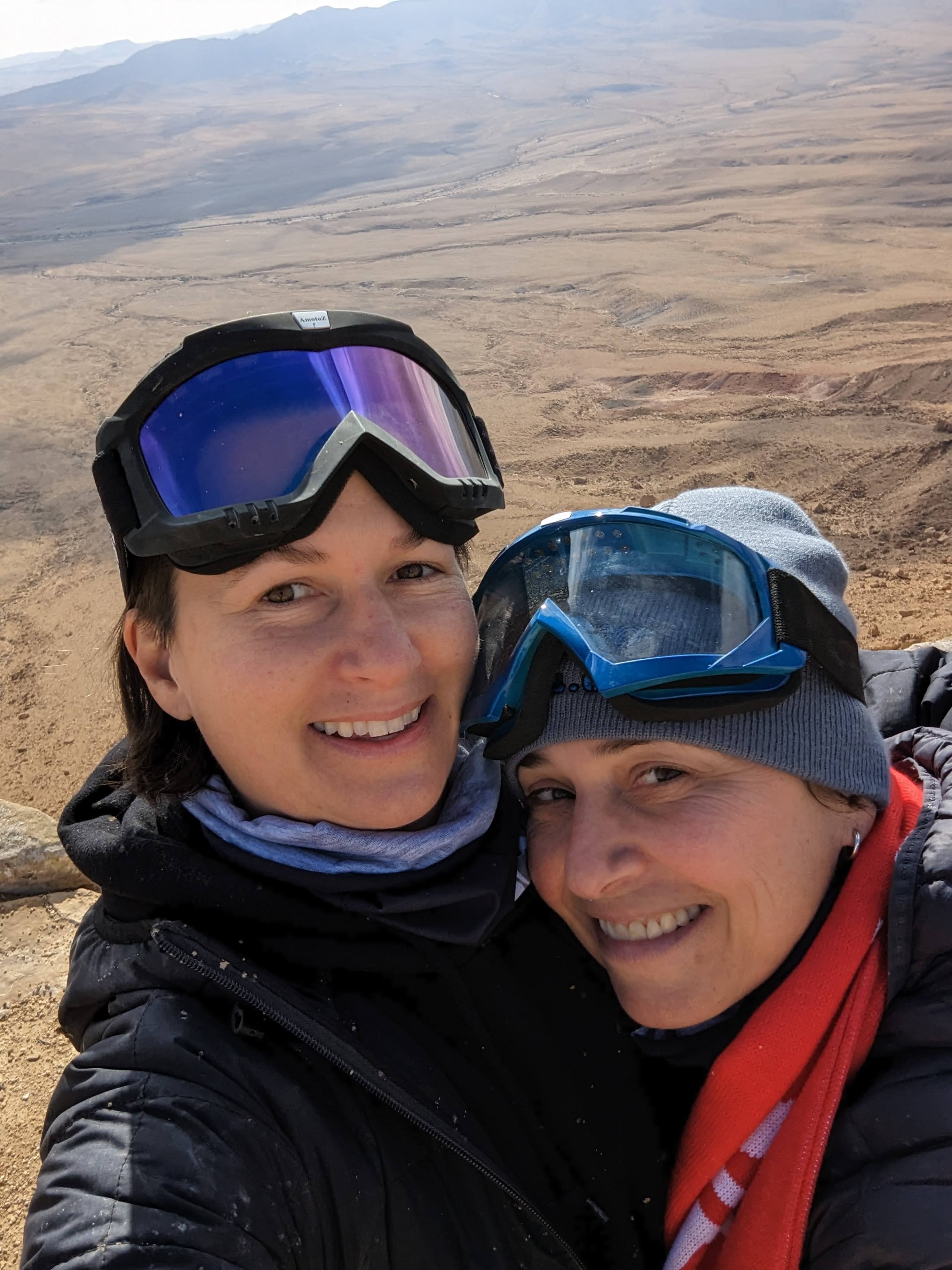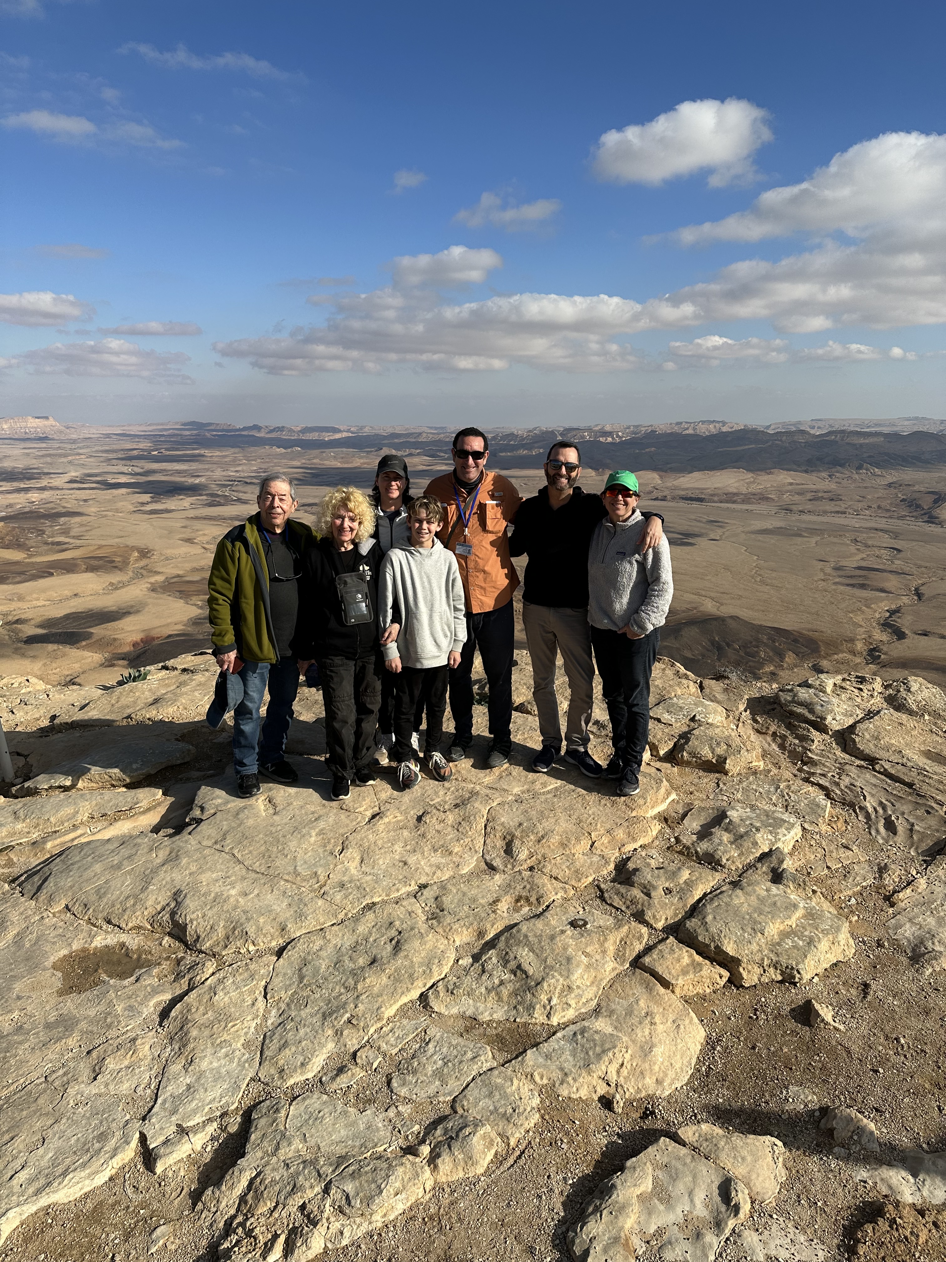 As we’ve done for many days now, we gather in our trusty van with Hilik at the helm, especially excited about our first stop: Mizpeh Ramon, where we will get to ride ATVs (“I wanna drive!”) through the desert. I pictured ATVs that would be more like a four-wheeled motorcycle if you know what I mean, but no – these are jeep-sized, four-seater, beefy, knobby-tired, rollover-no-problem, all terrain beasts! Woo hoo! This is gonna be fun.