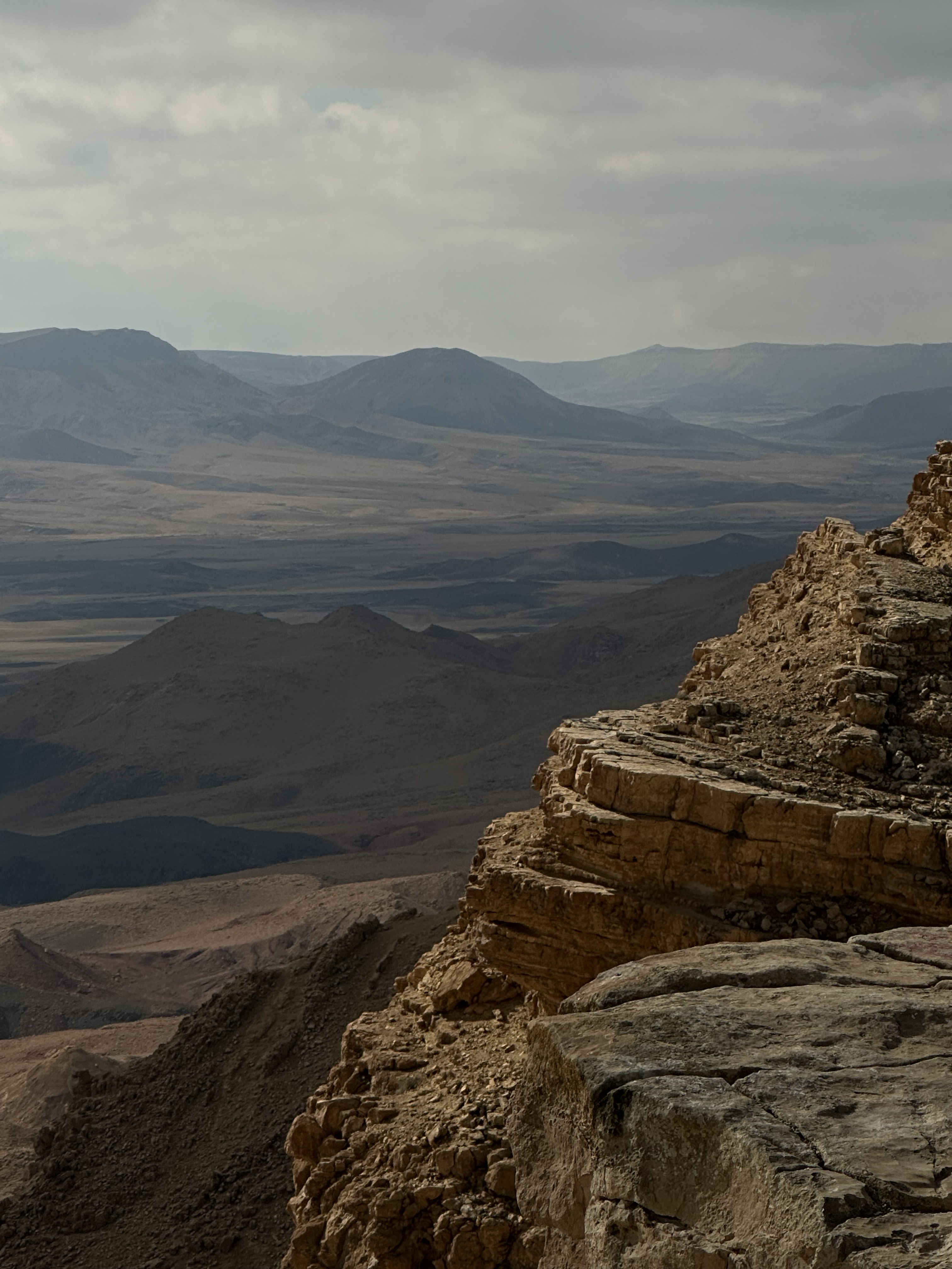 While the journey is certainly a highlight, the destination turns out to be spectacular. We are on the edge of the Makhtesh Ramon and it is just mind blowing. It stretches as far as you can see in both directions, it’s depth beckoning you to peer over the edge of its sheer cliffs.