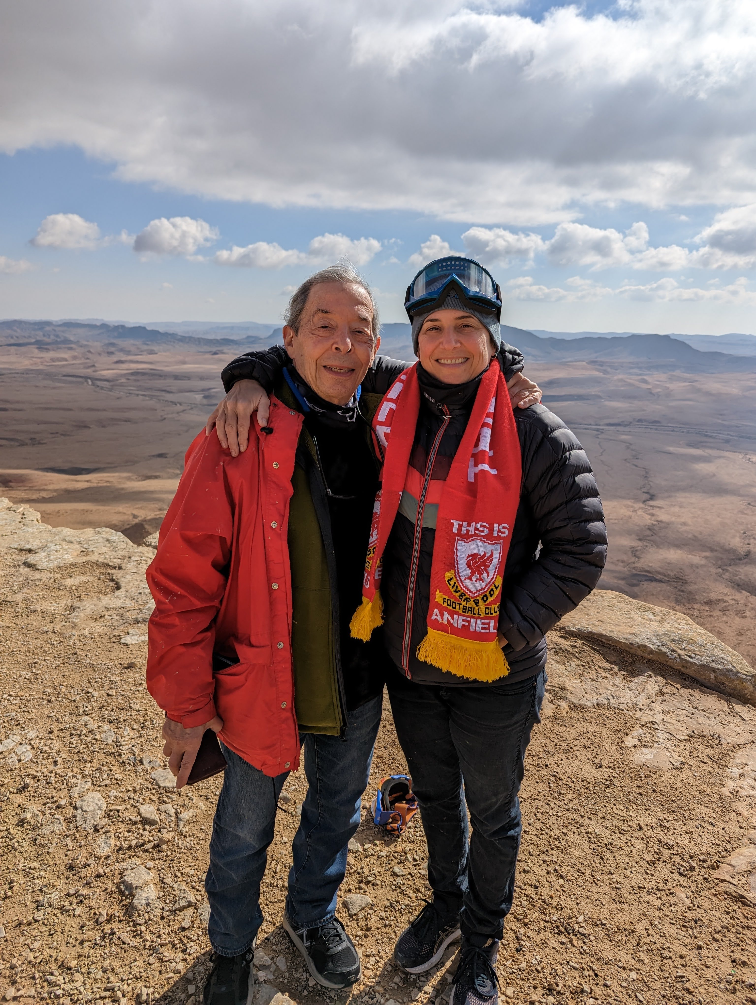 After a tasty lunch at a hippy-dippy sort of vegan place, we make our way to the Makhtesh Ramon Visitor’s Center. It’s not only THE vantage point (complete with a new hotel right on the edge), but also a place to hear about Ilan Ramon, an Israeli astronaut who was killed when the space shuttle Columbia blew up in 2003. The makhtesh is not his namesake but he is a national hero so it’s fitting his tribute is here. The Ramon Crater on the far side of the moon is indeed named after him.