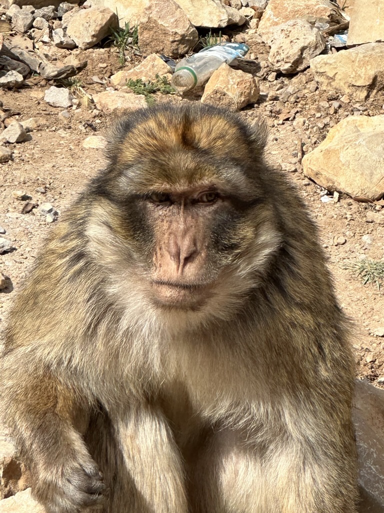 It’s not long since we left Ifrane, and suddenly Yusef pulls off the road. We are startled from our road-trip stupors and wonder what’s going on?! There are other cars stopped and several people milling about…to see the monkeys! At a time in days gone by that no one can quite pinpoint, our fellow humans started giving them bits to eat, and it didn’t take them long to learn this was the place to hang out. They are not afraid of us, bordering on aggressive. For you fauna-fites, they are Barbary macaques, an endangered ape (they are not monkeys, per se) found here and in Algeria.