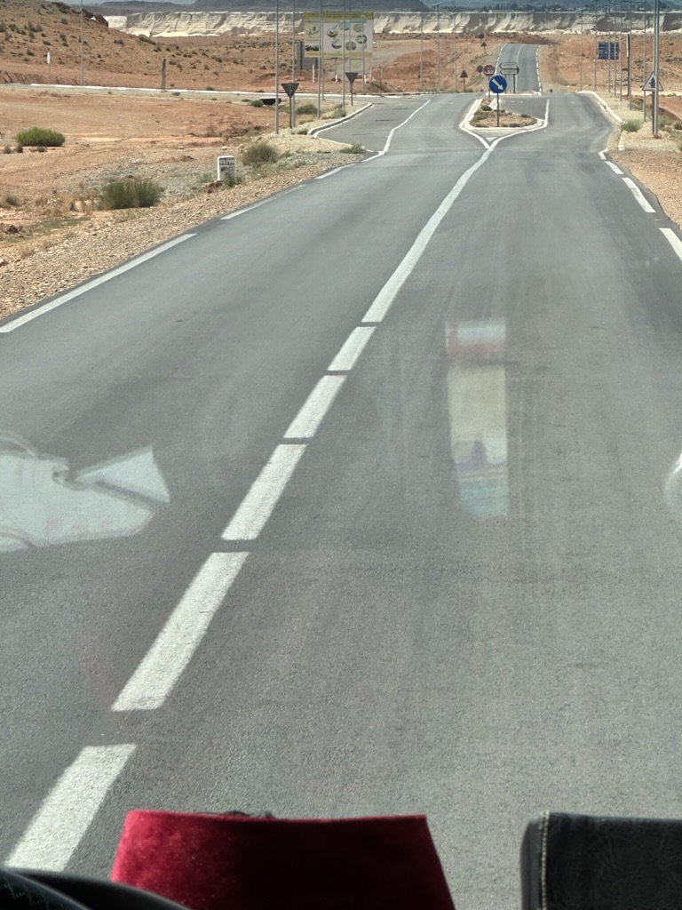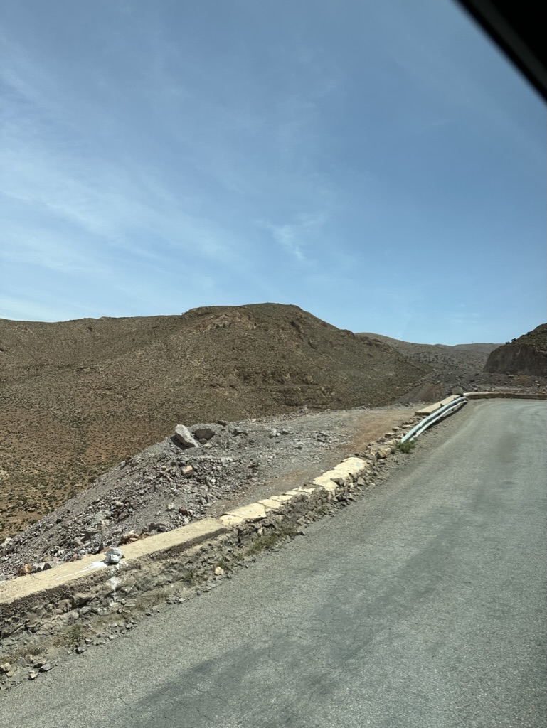 After we emerged from Old Fes yesterday afternoon, we chilled by the pool, we ate, we packed, we slept, we arose and went on our way in the early morn. The Sahara’s sandy slopes beckoned, wanting us to arrive before sunset. It’s a long, long drive – that will be punctuated by a few stops along the way but frankly there just isn’t much to see between here and there. We double check for essentials – passport, wallet, phone – and Yusef hits the gas.