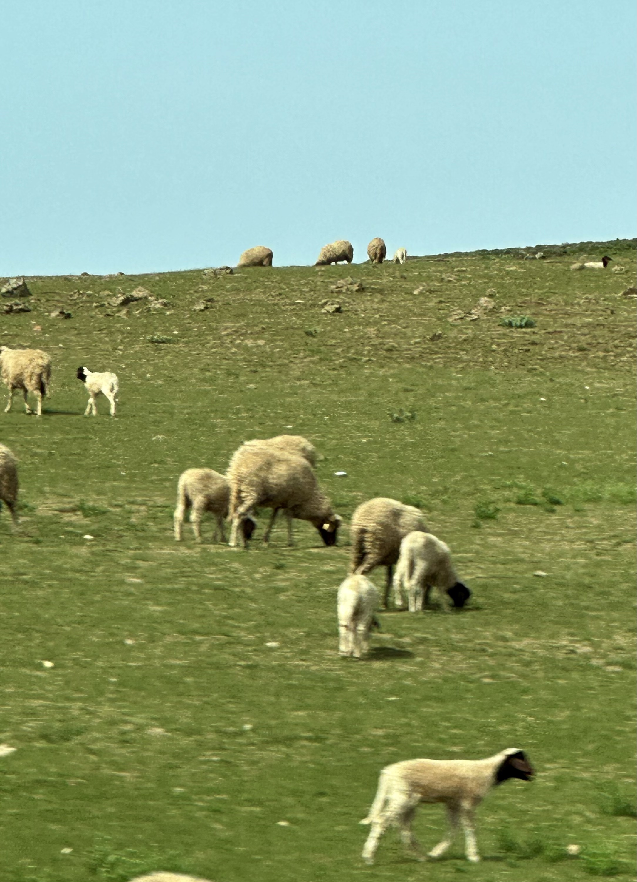 There are bedouin camps along the way – very different than we saw in Israel and Jordan last year. The open rocky plains are dotted with sheep herds and goats, the trees few and far between.