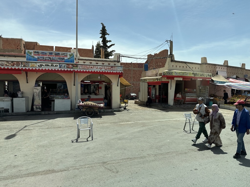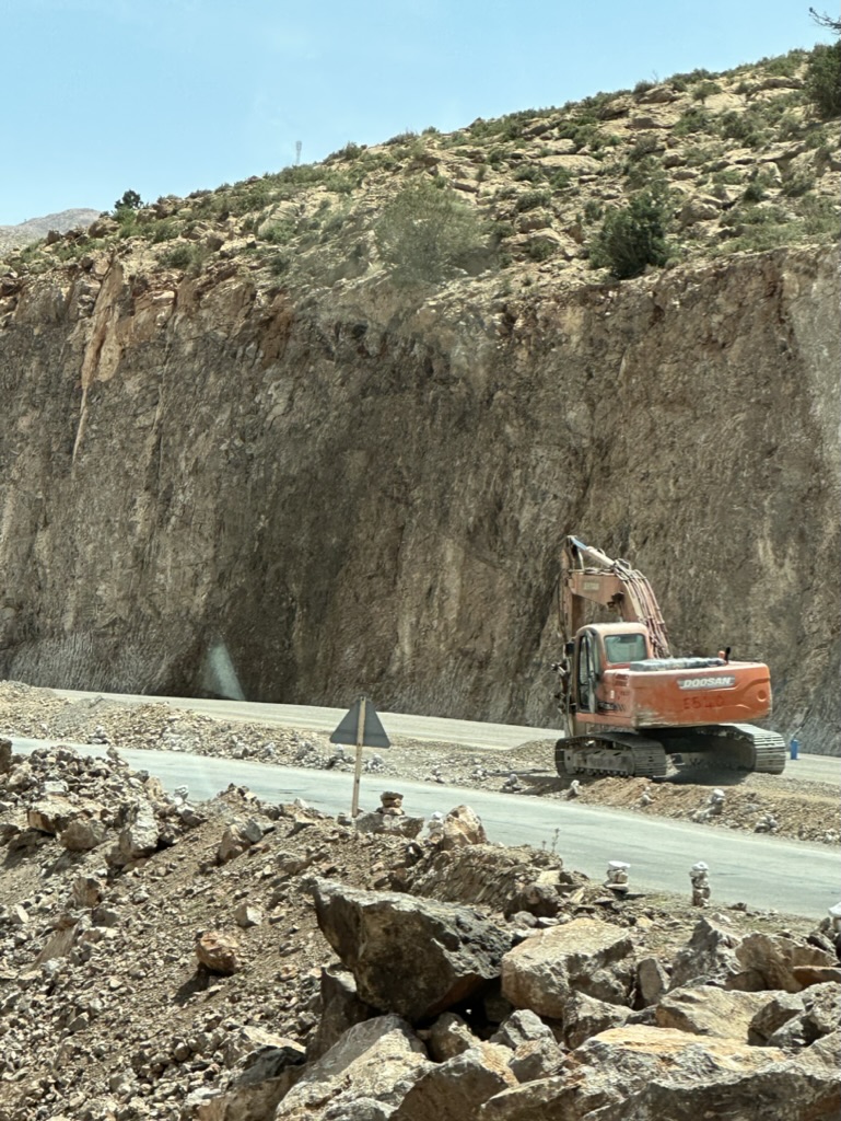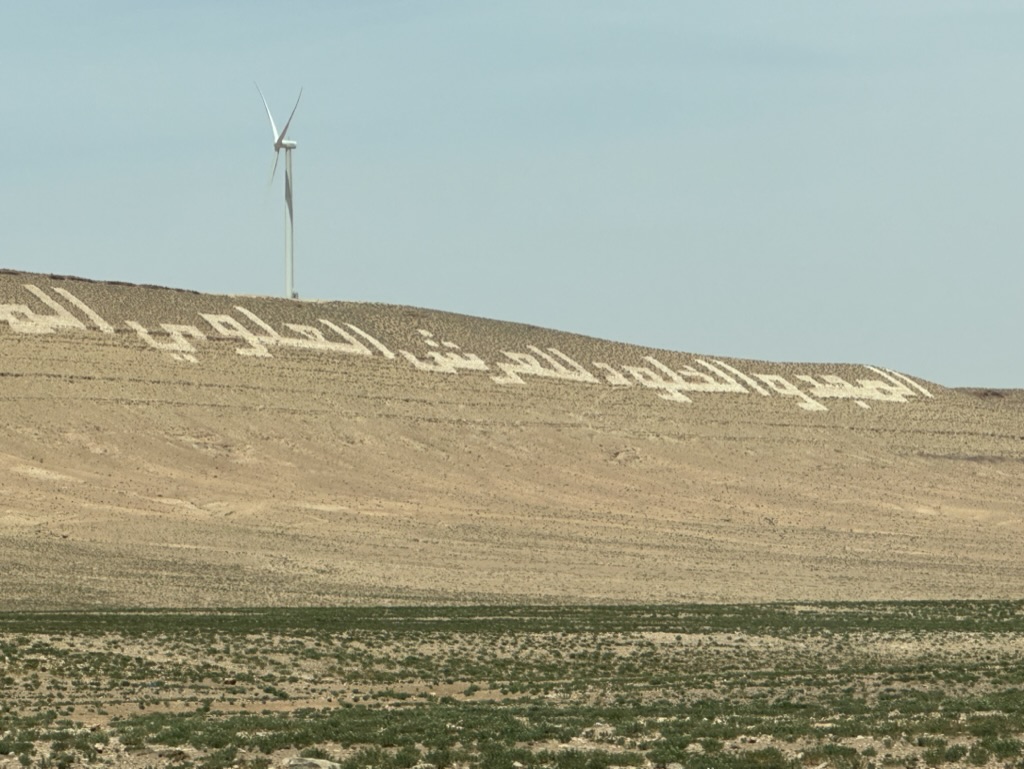 Our drive is slowed by construction that never ends. The troops are getting restless for sure. Around the next bend is a lake – a damn, actually, stopping the water that comes from the largest oasis in the world (we will see this tomorrow) – which gives Adil a topic to chat about. The small towns and empty roads continue to ramble by. Another gas station pit stop happens, where they thankfully have cold drinks and ice cream.