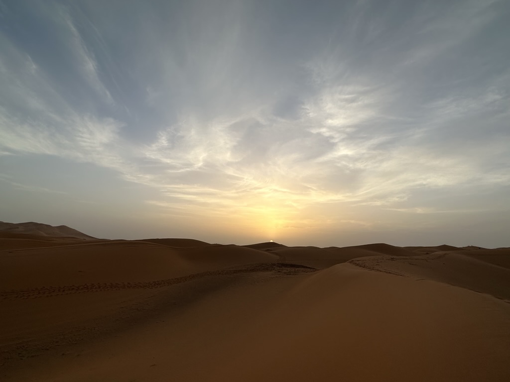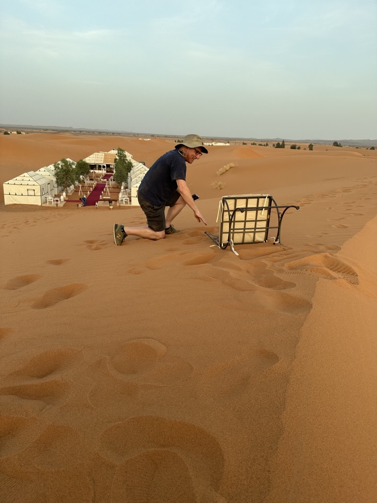 The hour is getting late, especially for those on the “let’s watch the sun rise in the desert” plan. Ya gotta do it, right? I mean, how many times in your life will you be in the Sahara desert as the sun comes up? And on top of that, there is the promise of dune boarding! All of this, and breakfast, need to be wrapped by 8:30, so we turn in, sleep coming quickly in the desert’s silence…