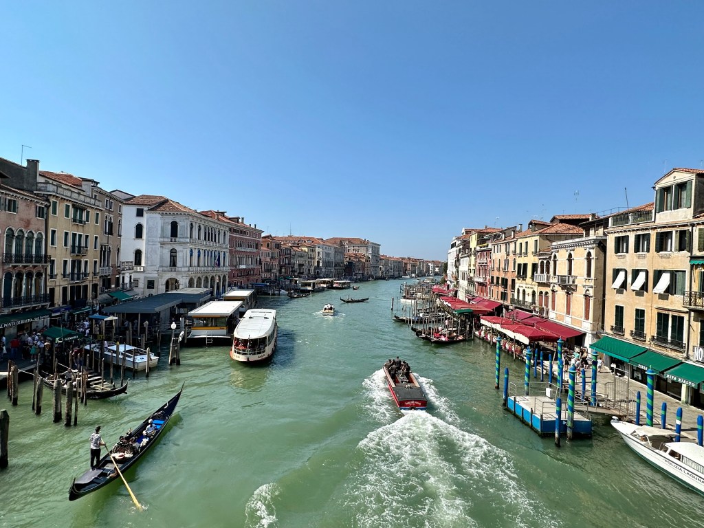 But I digress and jump over time – let me back up! Martine had arrived Venice while we were getting lost looking for dinner between our visits to the Doge’s Palace and St. Mark’s Basilica. We all met up the next morning, and while the plans for the day got quickly jumbled (that’s another story), we found ourselves atop the famous Rialto Bridge. It’s thrilling to be in such an iconic place…originally built in – gulp – 1173. Didn’t look then quite like it does today, of course, but suffice to say this has been a major crossing over the Grand Canal for nearly 900 years. The current bridge was constructed in 1591…impressively historic in its own right.