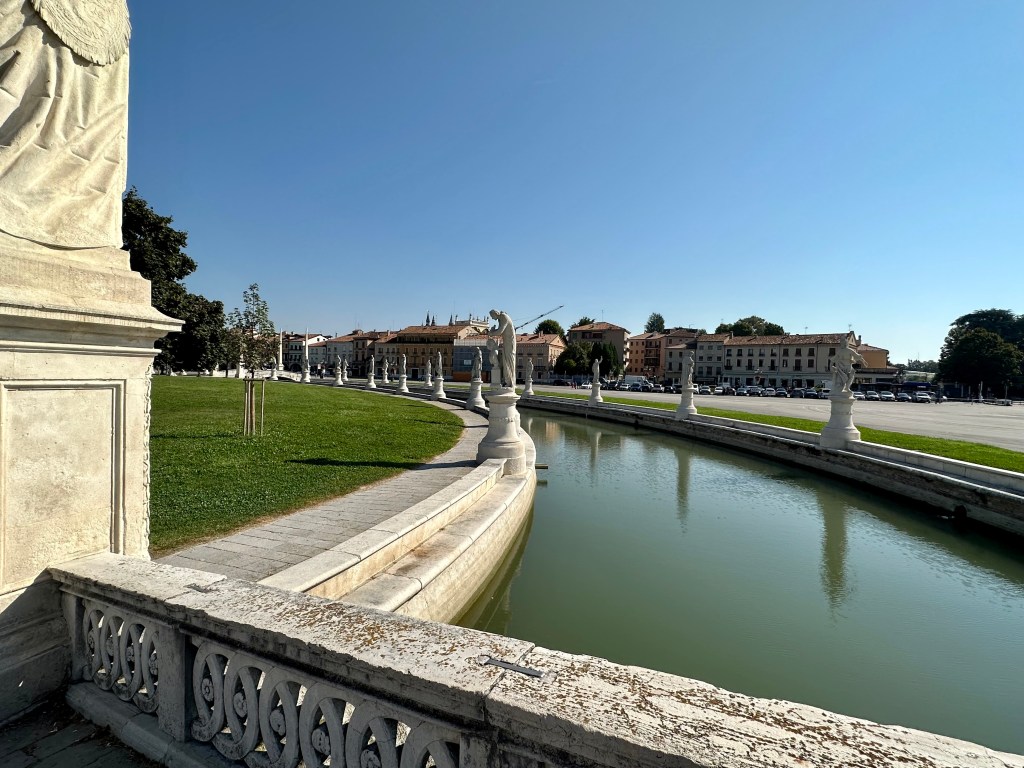 Docked for the night, we awaken the next morning on this beautiful new ship and pull ourselves together for an excursion to Padua. Sometimes included in greater Venice, it is just to the west, and a short bus ride drops us in the main park, the Prato della Valle.