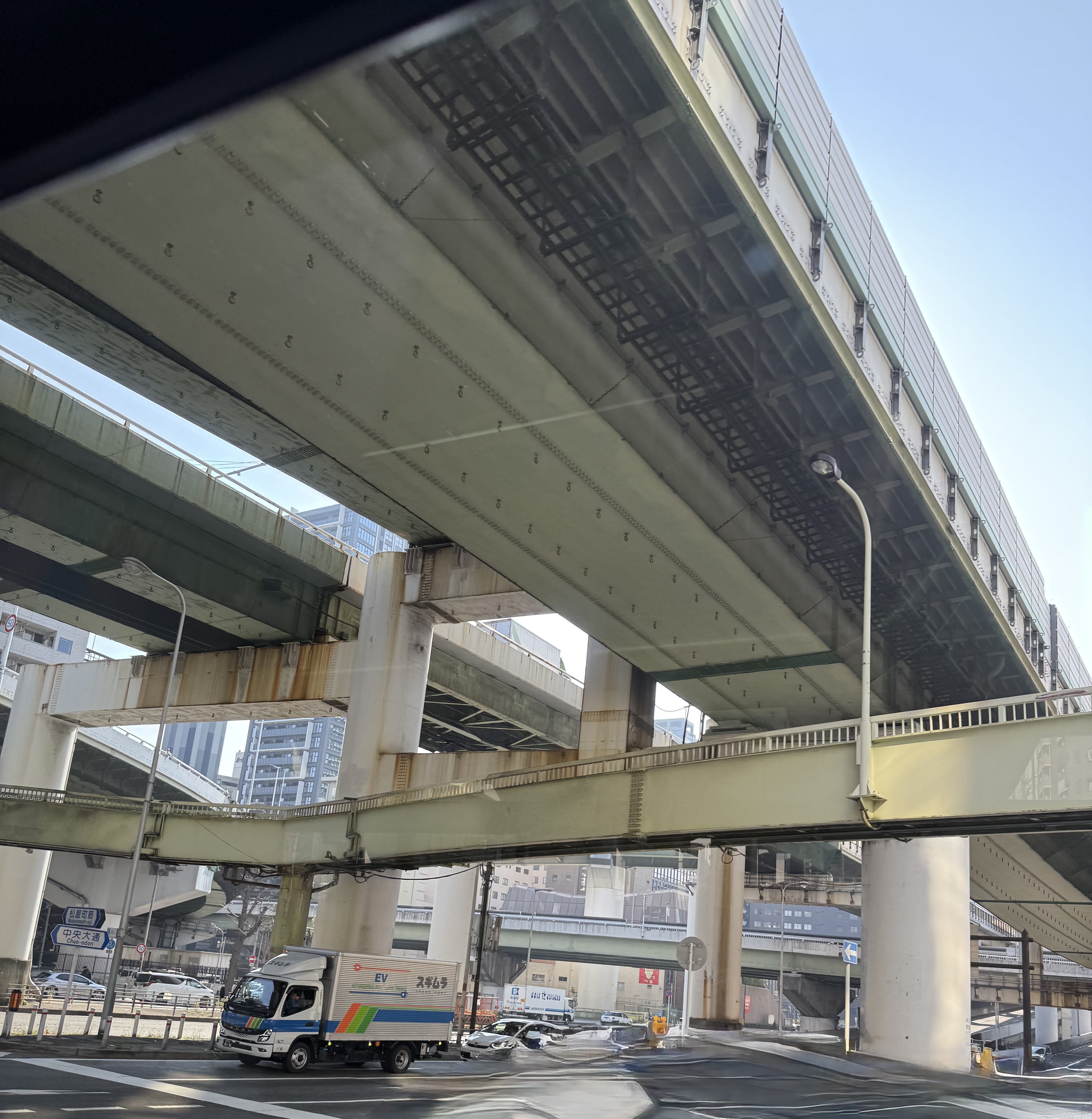 Traversing Kobe on the way to Osaka is easy using the elevated highways that snake their way over city streets. The motor coach rumbles along, taking us past the nondescript architecture that is surprisingly ubiquitous to Japan. I expected much more creative design but 90% of it is utilitarian and practical. Perhaps that is just the Japanese way.