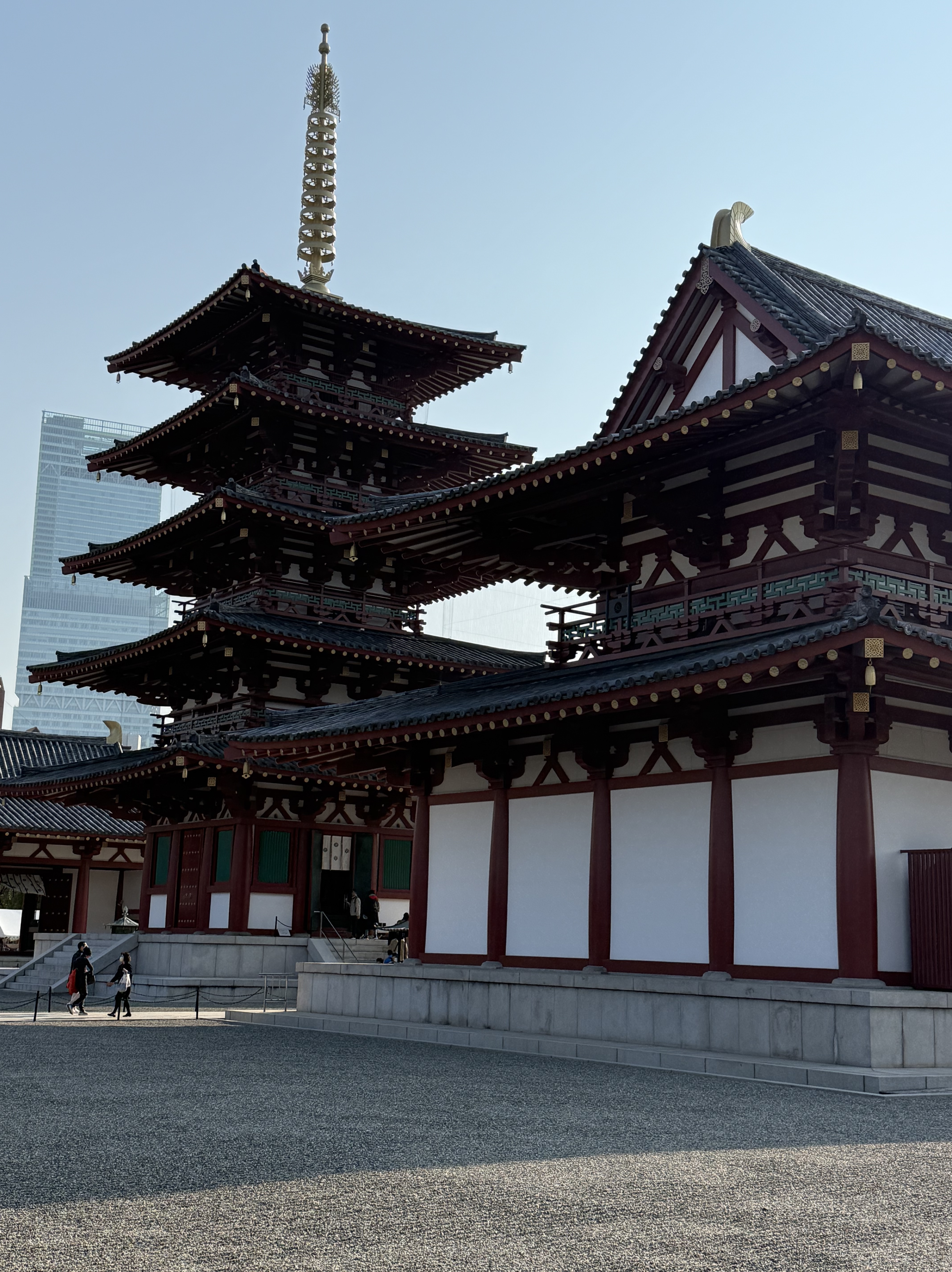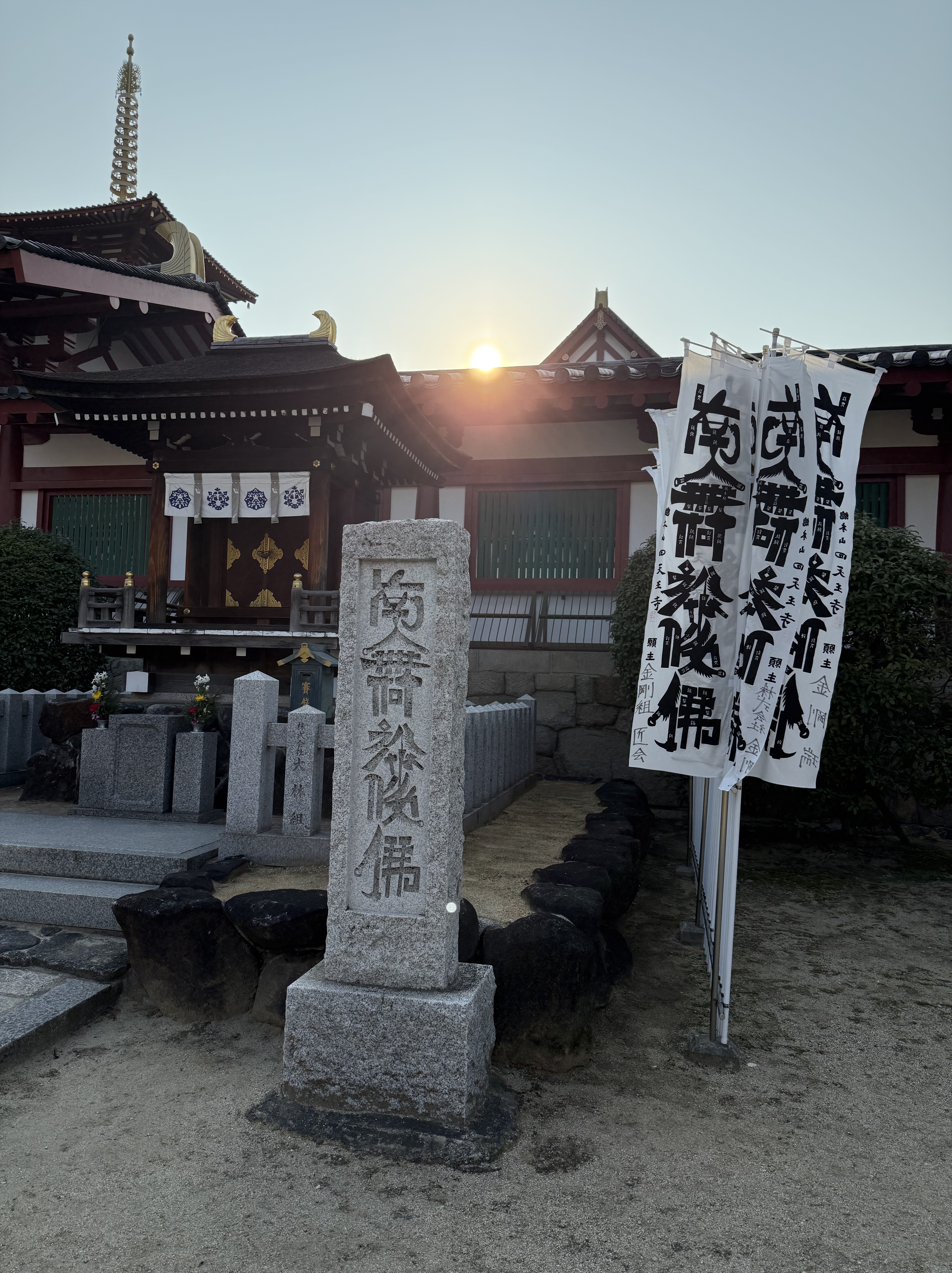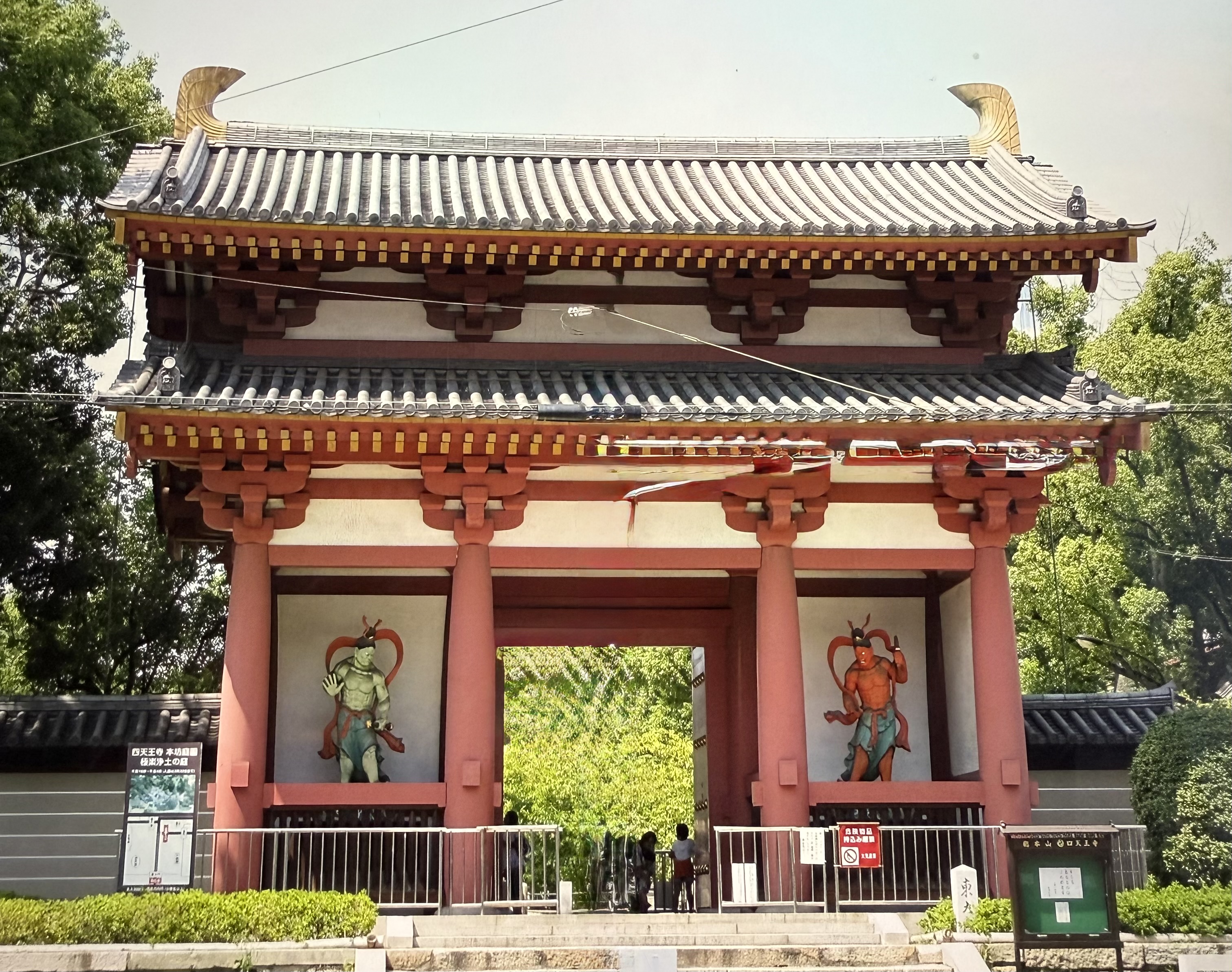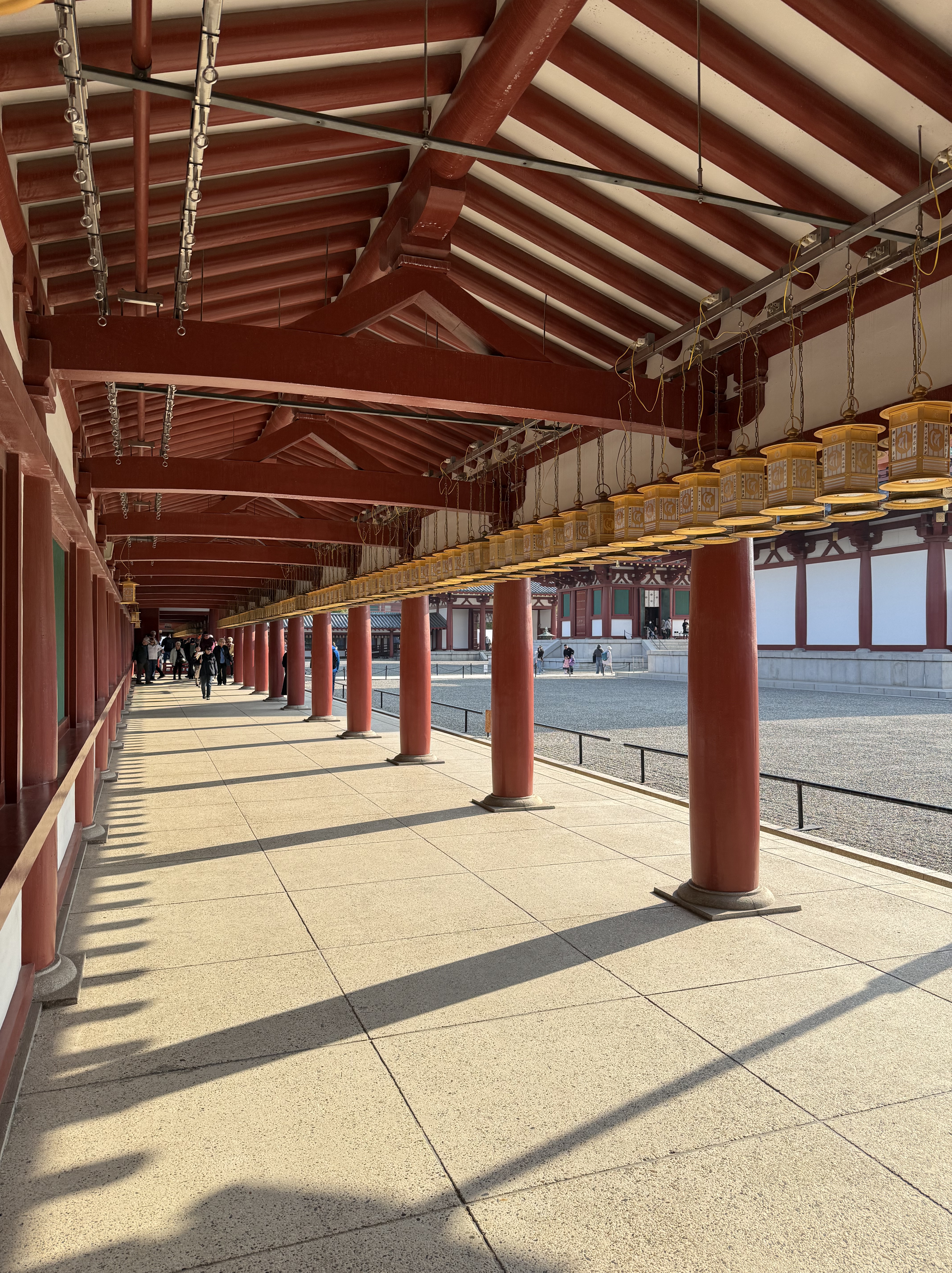 While we were in Tokyo, someone said “you are going to be Templed out by the time you are done with this trip,” and we are getting a sense of that…as we head to Shitennoji Temple. It’s a buddhist temple whose site dates back to the 6th century; it has been rebuilt many times (as it seems many of the sites in Japan have). The gates and temple houses and perfectly raked gravel on the central square harmoniously exist in here, the hustle and bustle of Japan’s 3rd largest city unable to penetrate the spirituality.