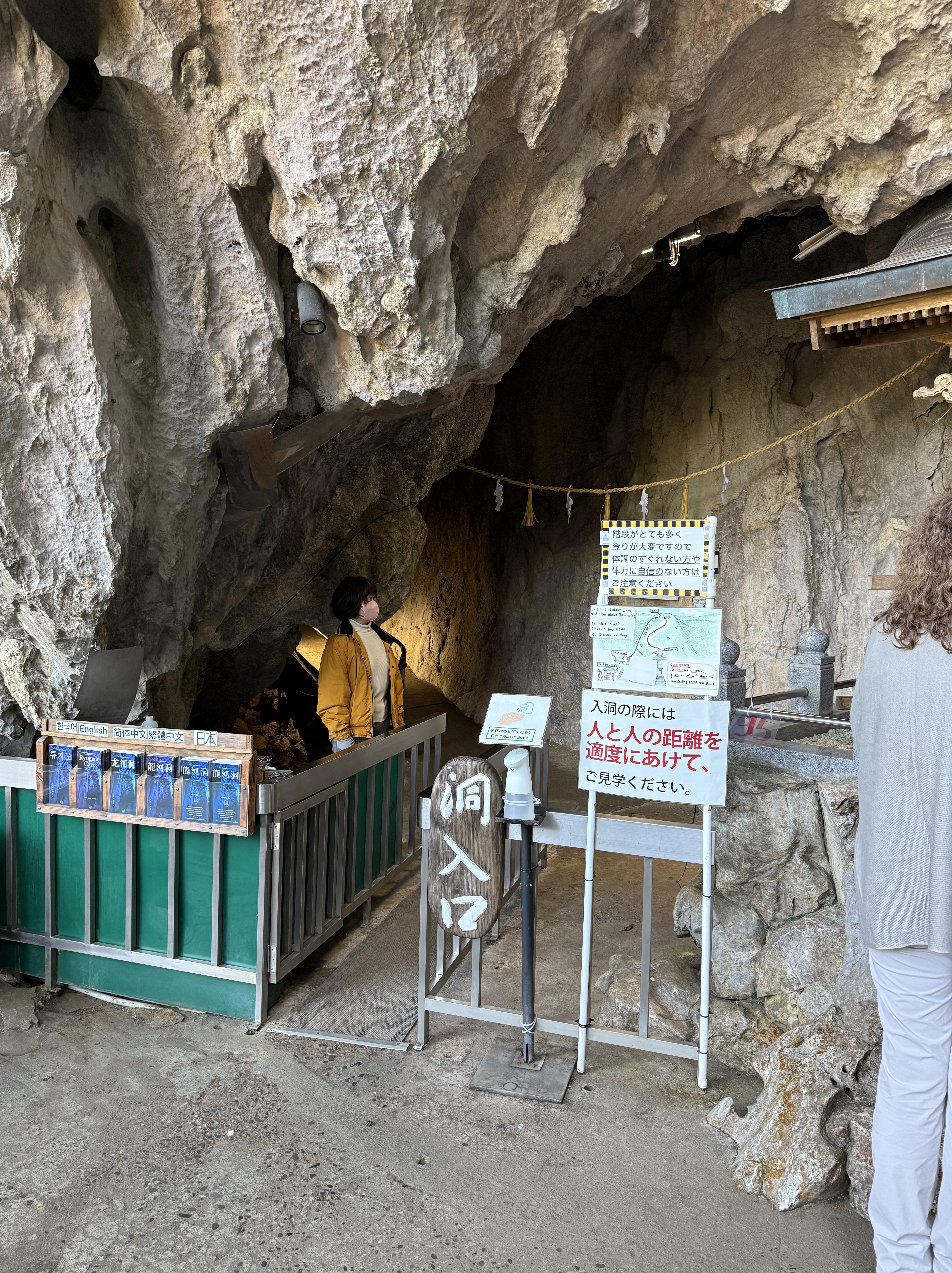 The bus rambles along carrying about 24 of us, the straight road soon curving this way and that as we head up into the hills. All of a sudden, we’ve arrived at the Ryugado Caves. It feels a little bit like a deserted town, but it’s really two short streets of quiet shops. Does this cater to tourists or locals? Seems a bit of both from what they’re selling.