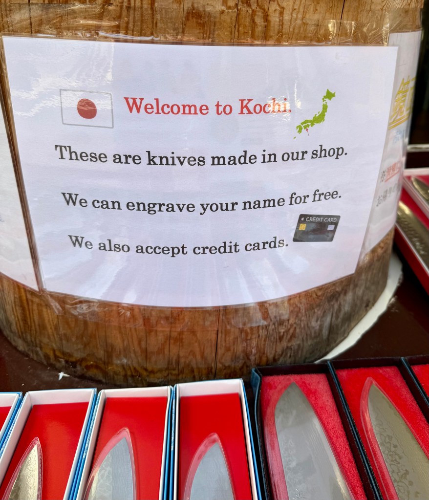 A bit of shopping – Japanese steel! – we buy knives, hoping that the workshop where they make these is legit. And that we are allowed to bring them on the ship, let alone get them home.