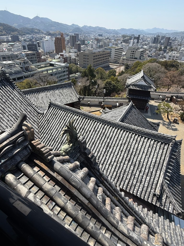 A quick trip down the hill and into the city we go…cars and street lights, left turns and right…then rising high above us is Kochi Castle. Originally built as a fort with a watchtower in the early 16th century, the site and structure went through various incarnations until it was finished in 1610 by Yamauchi Katsutoyo, a lord made famous in battle, rewarded for his valor. It was destroyed by fire but rebuilt in 1753, and is still that same reconstruction. Incredible that it has survived this long.